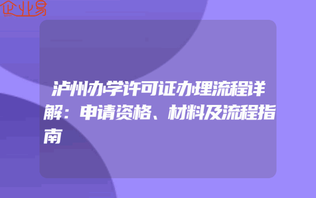 - 泸州办学许可证办理流程详解:申请资格、材料及流程指南
