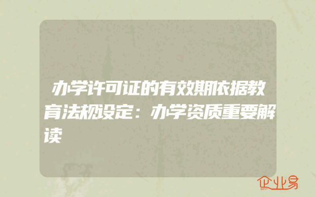 - 办学许可证的有效期依据教育法规设定:办学资质重要解读