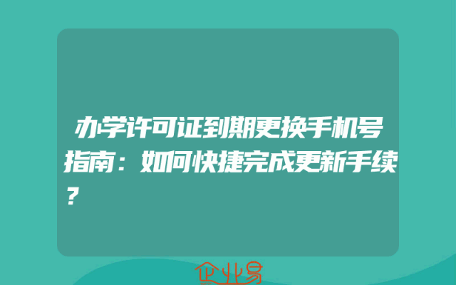 - 办学许可证到期更换手机号指南:如何快捷完成更新手续?