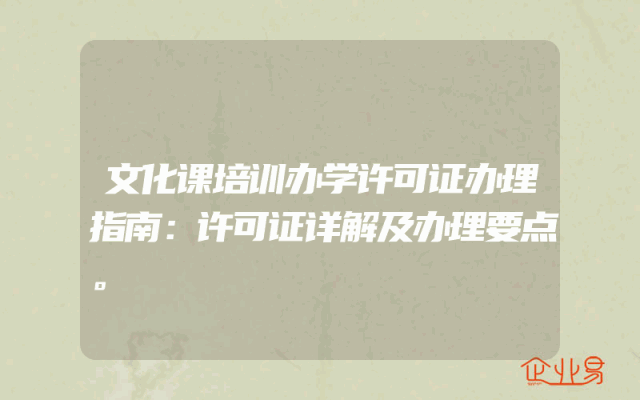 - 文化课培训办学许可证办理指南:许可证详解及办理要点。