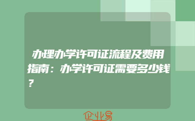 - 办理办学许可证流程及费用指南:办学许可证需要多少钱?