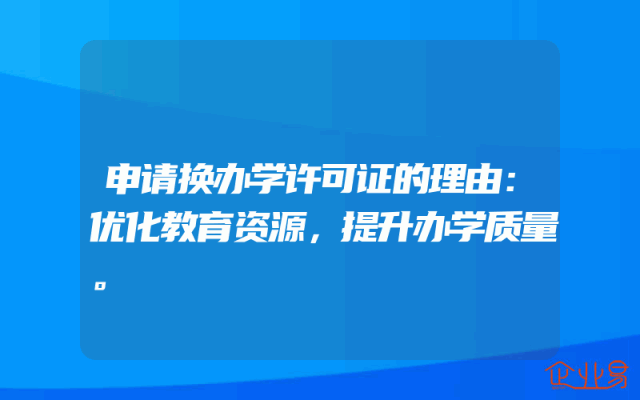 - 申请换办学许可证的理由:优化教育资源,提升办学质量。
