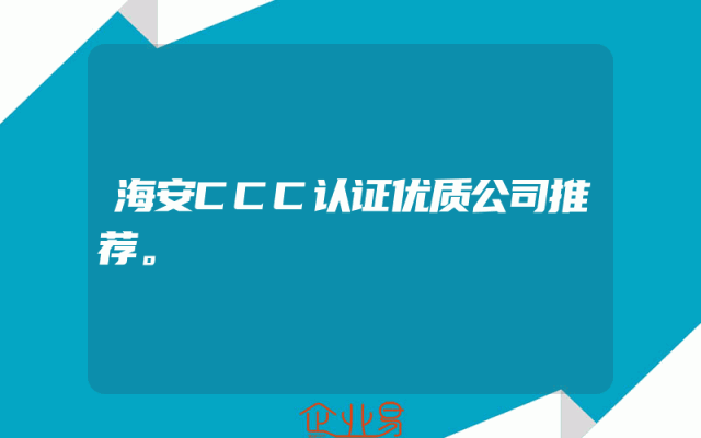 - 海安CCC认证优质公司推荐。