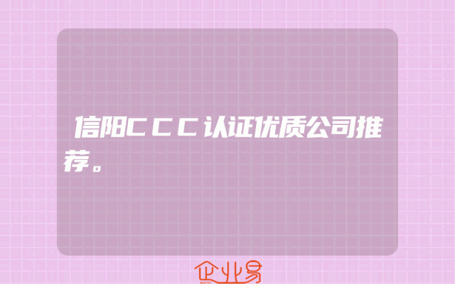 - 信阳CCC认证优质公司推荐。