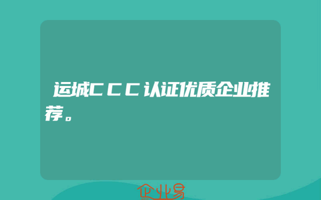 - 运城CCC认证优质企业推荐。