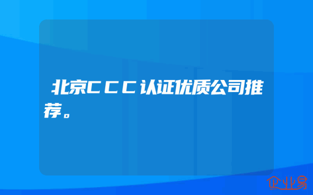 - 北京CCC认证优质公司推荐。