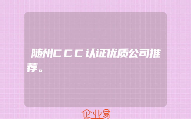 - 随州CCC认证优质公司推荐一、引言随着市场经济的发展,企业之间的竞争日益激烈,特别是对于那些涉及到产品质量安全的企业来说,获取权威认证是提升竞争力的重要途径之一。在随州地区,有许多企业致力于获取CCC认证,以证明其产品符合国家和国际