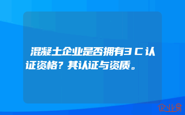 - 混凝土企业是否拥有3C认证资格?其认证与资质。