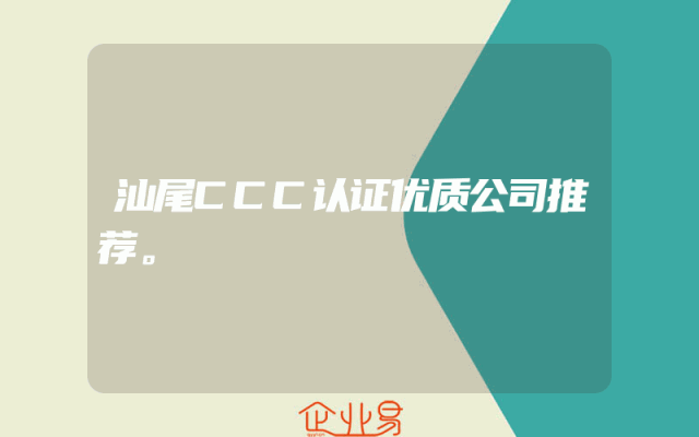 - 汕尾CCC认证优质公司推荐。
