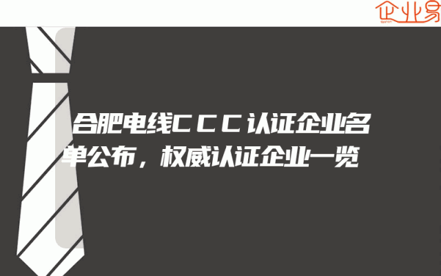 - 合肥电线CCC认证企业名单公布,权威认证企业一览