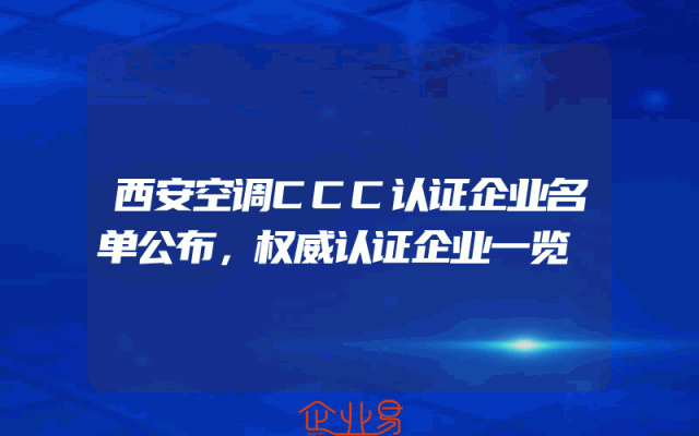 - 西安空调CCC认证企业名单公布,权威认证企业一览