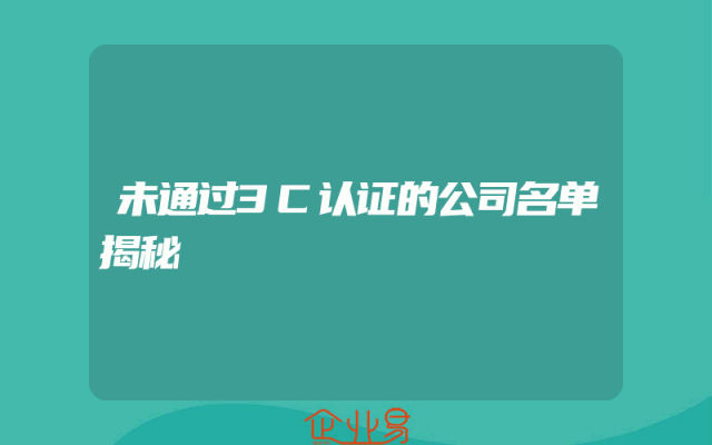 - 未通过3C认证的公司名单揭秘背景介绍在当今社会,产品质量和安全直接关系到消费者的利益和社会的稳定。为了确保产品的质量和安全,我国政府实行了一系列的产品认证制度,其中,中国强制性产品认证(简称3C认证)便是其中之一。本文将聚焦于那些未能通过3