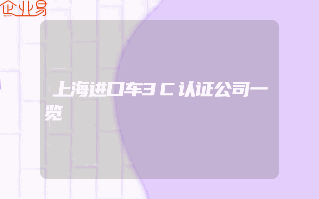 - 上海进口车3C认证公司一览一、进口车市场概况随着国内汽车市场的快速发展,消费者对进口车的热情不断高涨。在这样的背景下,进口车市场日趋繁荣。而作为车辆进入中国市场的重要准入证明,3C认证成为了进口车不可或缺的一环。上海作为中国的经济中