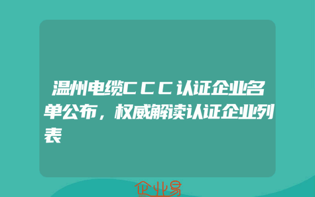 - 温州电缆CCC认证企业名单公布,权威解读认证企业列表
