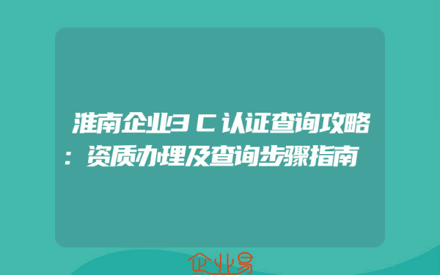- 淮南企业3C认证查询攻略:资质办理及查询步骤指南