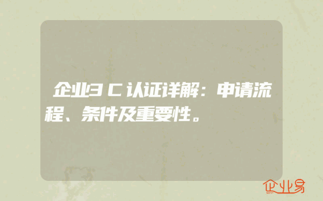 - 企业3C认证详解:申请流程、条件及重要性。