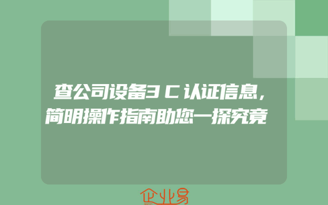 - 查公司设备3C认证信息,简明操作指南助您一探究竟