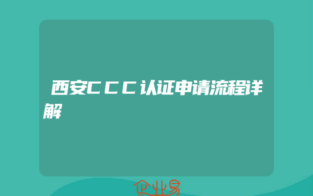 - 西安CCC认证申请流程详解