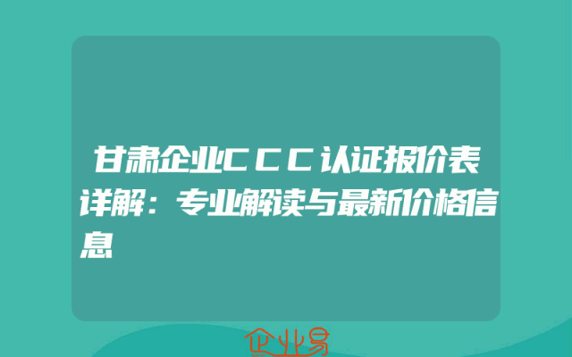 - 甘肃企业CCC认证报价表详解:专业解读与最新价格信息