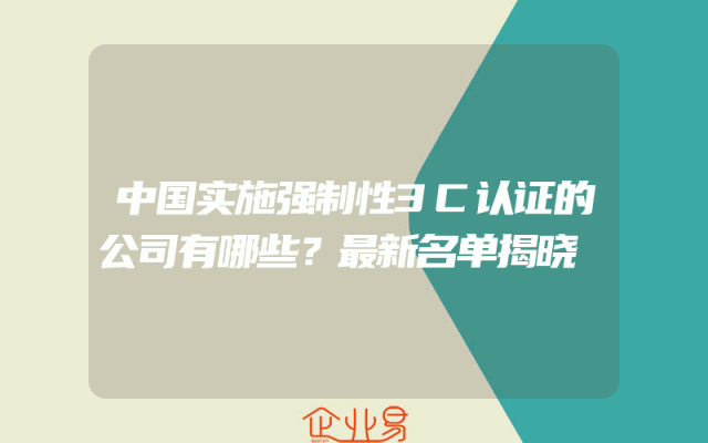 - 中国实施强制性3C认证的公司有哪些?最新名单揭晓