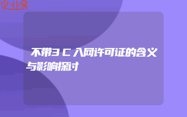 - 不带3C入网许可证的含义解析与影响探讨引言近年来,随着信息技术的快速发展,网络成为了我们生活与工作中不可或缺的一部分。在此背景下,众多企业涉入网络服务领域,相关的认证与许可也显得尤为重要。其中,关于是否拥有3C入网许可证成为了许多企业关注的