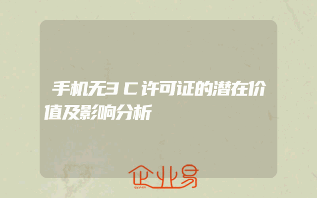 - 手机无3C许可证的潜在价值及影响分析一、什么是手机无3C许可证随着科技的飞速发展,智能手机成为人们日常生活中不可或缺的一部分。然而,随着市场规范化要求的提升,对于手机的认证也愈加严格。其中,中国国家强制性产品认证,简称CCC认证(也就是常说