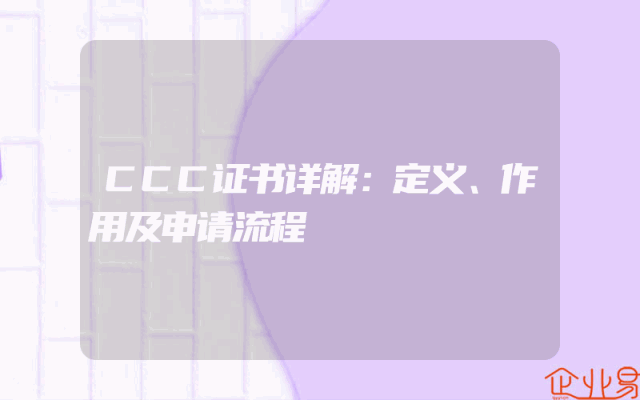 - CCC证书详解:定义、作用及申请流程一、CCC证书的定义CCC证书,全称为“中国强制性产品认证证书”,是中国政府为保护消费者人身安全及动植物生命安全,加强产品质量管理,实施的一种产品合格评定制度。此证书是厂商产品进入市场的重要准入证明,也是