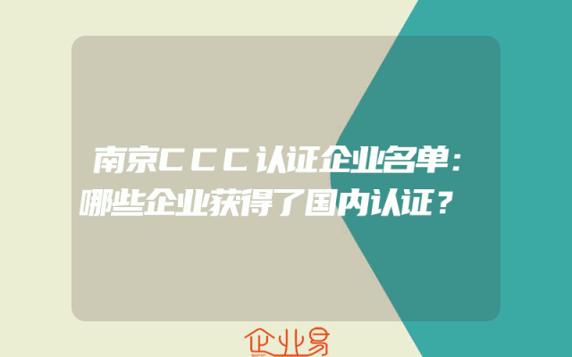 - 南京CCC认证企业名单:哪些企业获得了国内认证?