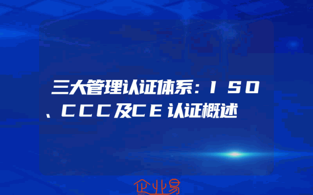 - 三大管理认证体系:ISO、CCC及CE认证概述