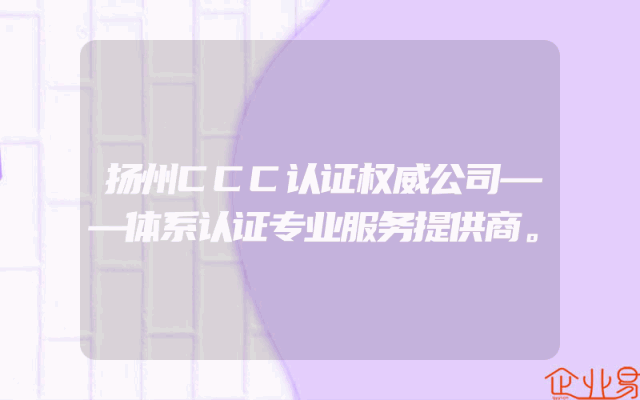 - 扬州CCC认证权威公司——体系认证专业服务提供商。