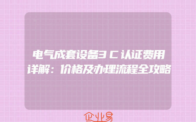 - 电气成套设备3C认证费用详解:价格及办理流程全攻略