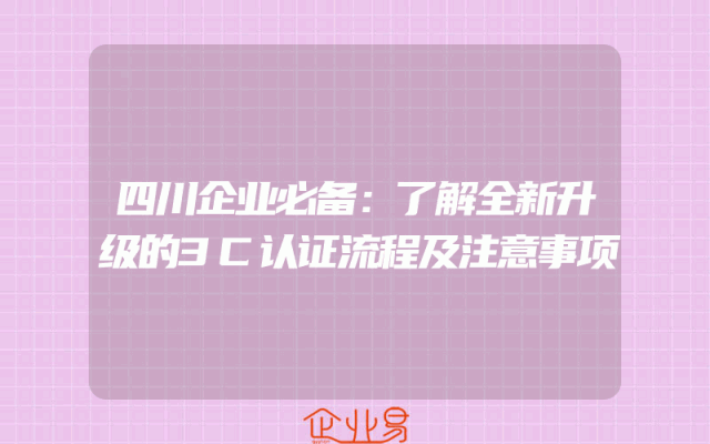 - 四川企业必备:了解全新升级的3C认证流程及注意事项