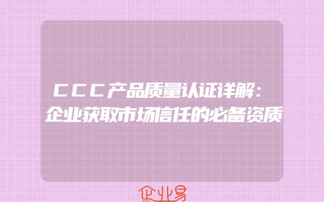 - CCC产品质量认证详解:企业获取市场信任的必备资质