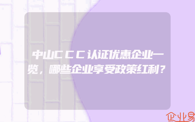 - 中山CCC认证优惠企业一览,哪些企业享受政策红利?