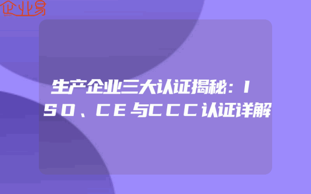 - 生产企业三大认证揭秘:ISO、CE与CCC认证详解