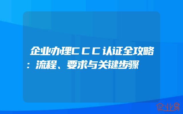- 企业办理CCC认证全攻略:流程、要求与关键步骤