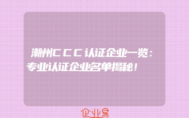 - 潮州CCC认证企业一览:专业认证企业名单揭秘!