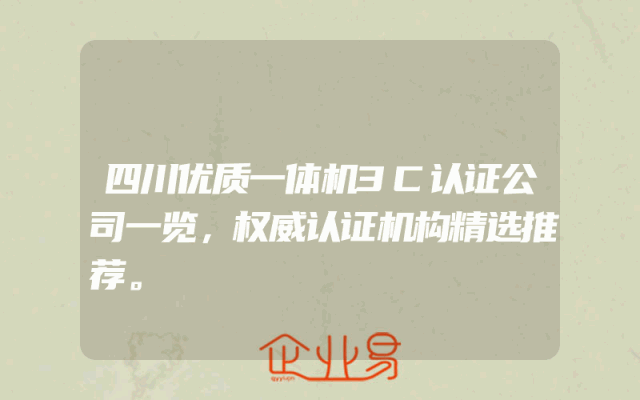 - 四川优质一体机3C认证公司一览——权威认证机构精选推荐一、引言随着科技的不断进步,电子产品市场日益繁荣,各类产品层出不穷。在这个竞争激烈的市场环境下,企业和消费者都对产品品质提出了更高的要求。其中,产品品质认证是衡量产品质量的重要指标之一。