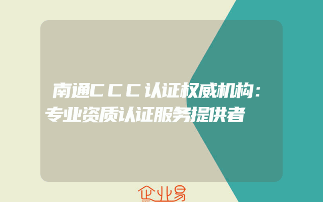 - 南通CCC认证权威机构:专业资质认证服务提供者