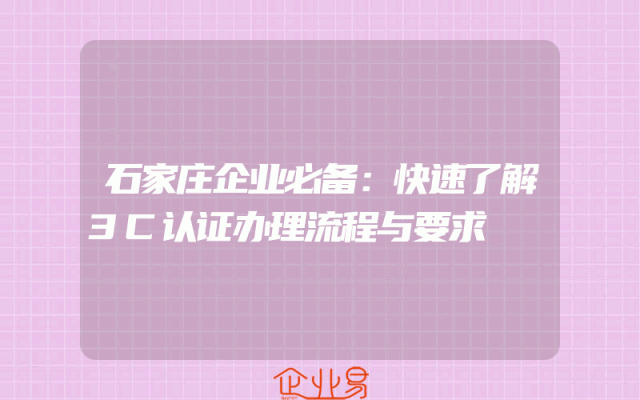 - 石家庄企业必备:快速了解3C认证办理流程与要求