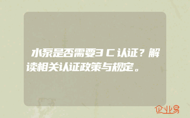 - 水泵是否需要3C认证?解读相关认证政策与规定。