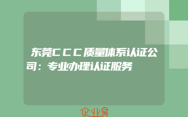 - 东莞CCC质量体系认证公司:专业办理认证服务