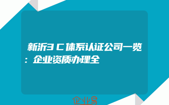 - 新沂3C体系认证公司一览:企业资质办理全