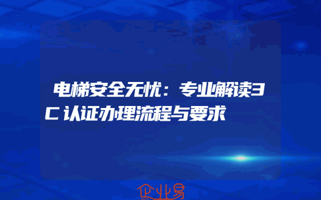 - 电梯安全无忧:专业解读3C认证办理流程与要求