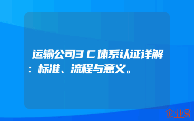 - 运输公司3C体系认证详解:标准、流程与意义。