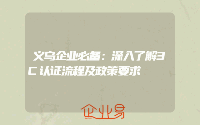 - 义乌企业必备:深入了解3C认证流程及政策要求