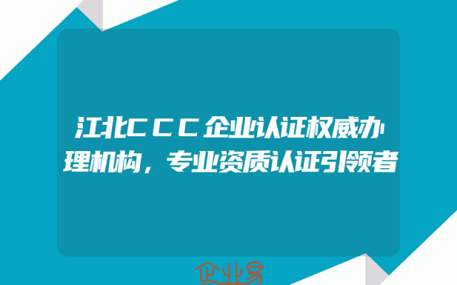 - 江北CCC企业认证权威办理机构,专业资质认证引领者