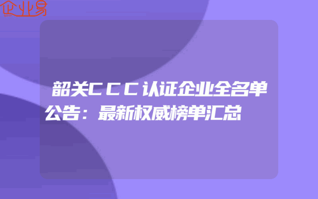 - 韶关CCC认证企业全名单公告:最新权威榜单汇总