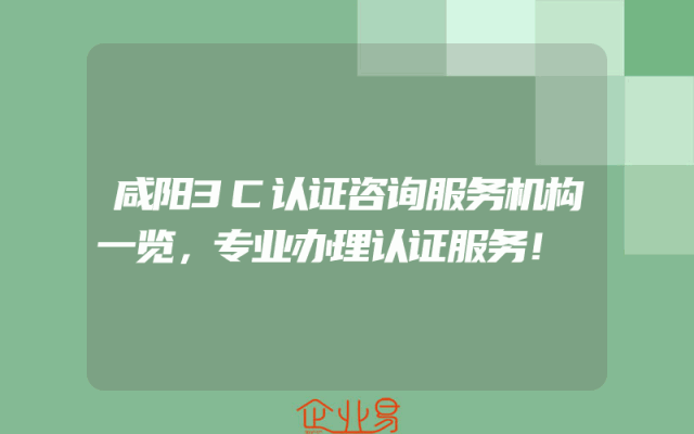 - 咸阳3C认证咨询服务机构一览,专业办理认证服务!