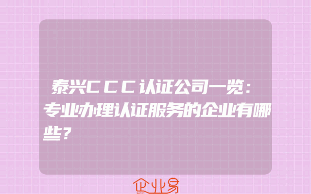 - 泰兴CCC认证公司一览:专业办理认证服务的企业有哪些?